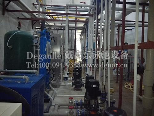 本次項目是一個標準恒溫泳池,容積50m*13.5m*1.4m=945m3,主要供小學生訓練使用。