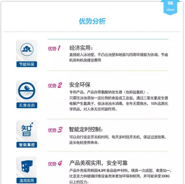 很多人說(shuō),戴高樂(lè)泳池設(shè)備的一體化泳池設(shè)備比淘寶貴的,也比其他廠家貴!但是,小編只想說(shuō),你們只看到我們的價(jià)格,并沒(méi)有看到我們的品質(zhì)。細(xì)心與戴高樂(lè)泳池設(shè)備打過(guò)交道的人都知道,戴高樂(lè)是一家擁有18年生產(chǎn)經(jīng)驗(yàn)的一體化泳池設(shè)備廠家,18年來(lái)我們只做精品,不做低價(jià),我們要的就是給客戶提供最優(yōu)質(zhì)的服務(wù)和產(chǎn)品,絕不以惡意的低價(jià)來(lái)騙取一兩個(gè)訂單,我們做的都是長(zhǎng)久的生意,也希望和客戶成為長(zhǎng)久的朋友。