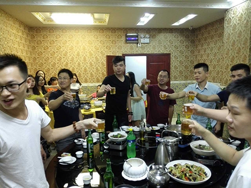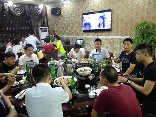 在緊張嚴肅的會議之后,全員到齊當然得去吃個團圓飯啦!(這個包間是不是很高大上呀,自帶點歌系統哦!)