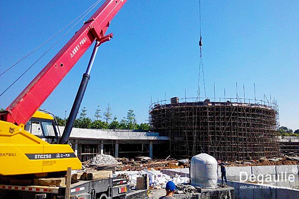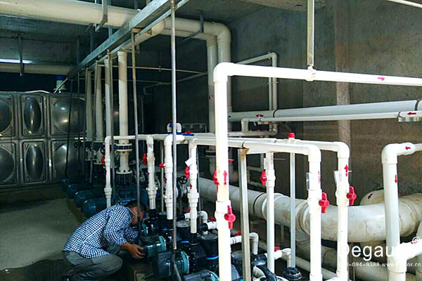 廣州增城華商學(xué)院標(biāo)準(zhǔn)泳池工程使用的是法國戴高樂型號:F-2000,纏繞式玻璃纖維材質(zhì),Q=125m3/h,濾速 38m/h,進(jìn)出水口:DN150,缸體直徑2000*2100mm的石英砂高效過濾器,5.5KW/380V吸污水泵,Q=150m3/h,H=16m,N=11kW的鑄鐵泵;采用的是傳統(tǒng)投藥消毒方式。
