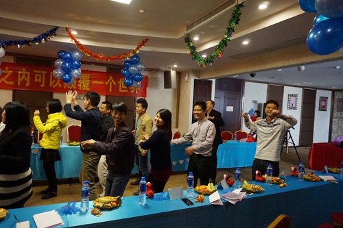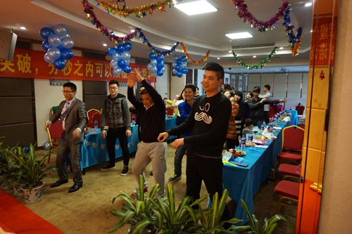 為了先調(diào)動(dòng)大家的熱情,全體在動(dòng)感音樂(lè)的帶領(lǐng)下,一起跳抓錢(qián)舞,用大家最大的熱情,啟動(dòng)我們的抓錢(qián)模式,拉開(kāi)我們2015年新年的序幕。不過(guò),抓錢(qián)舞在大家的演繹之下,似乎變成了群魔亂舞!