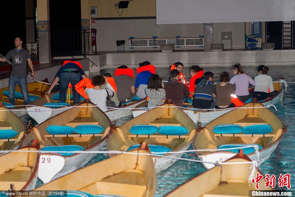 2012年12月11日訊,當地時間12月9日,法國巴黎,李安導演電影《少年派的奇幻漂流》在帕耶宏(Pailleron)游泳池放映現場。據悉,影片發行方不僅讓觀眾穿上救生衣、戴上3D眼鏡、坐上小船,在放滿水的游池中感受Pi的“奇幻漂流”,更有穿著印度服裝的美女現場助陣。