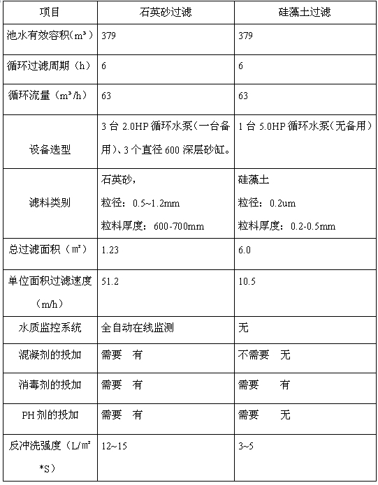 泳池采用砂濾方案和硅藻土方案技術(shù)經(jīng)濟(jì)綜合比較