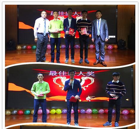 游戲里大家玩的太嗨了,接下來我們來一個更加激動人心的環節,那就是我們的表彰環節。在2015年,公司也注入了不少新鮮的血液,他們給公司帶來了活力,他們是一群后起之秀,眉宇間的青澀不代表稚氣,他們為戴高樂增添了一筆亮麗的色彩,所以最佳新人獎非他們莫屬,這些同事在不同的崗位上,盡職盡責,發揮著他們與眾不同的光和熱。
