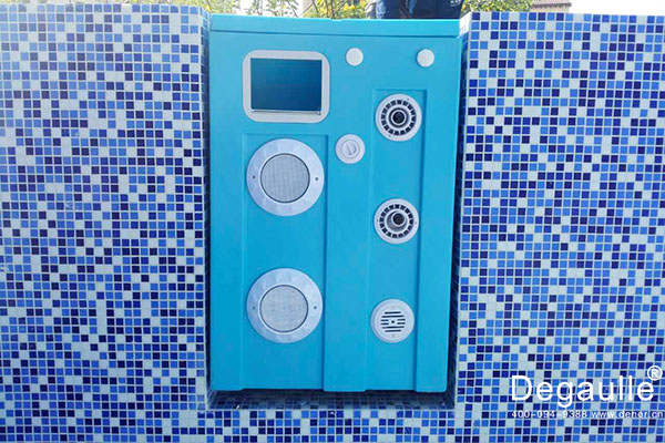 泳池一體化設備是集過濾、消毒、循環、水下燈為一體的設備,不需要安裝機房,也不需要部署管道,直接嵌在泳池池壁使用。戴高樂的泳池壁掛機S350是一體化泳池設備,安裝的方法也有兩種,壁掛式安裝,設備直接掛在泳池壁上;平嵌式安裝,設備與池壁平齊。