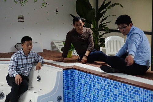 在參觀的過程中薛老師提出了很多關于這個新產品可拆式活動圍板泳池的建設性意見。產品要以用戶體驗為中心,要根據用戶使用場景去打造產品,要想象到用戶使用產品時的所有場景,這樣打造出來的產品才是用戶體驗最好的,最能滿足用戶需求的,最能深入到用戶內心的。