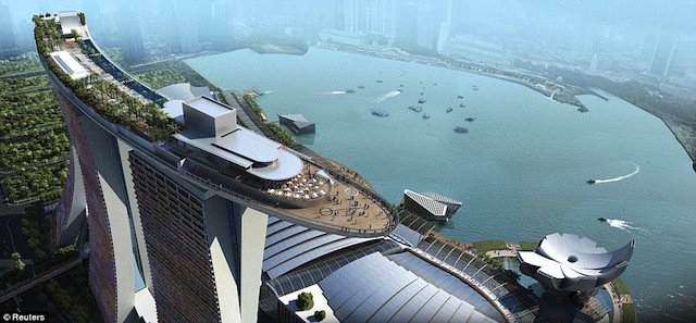 很少有游泳池的開幕式能上國際新聞,但新加波濱海灣金沙酒店55層高的塔樓頂端的這個世界上最大的無邊泳池,得到了廣大媒體朋友的爭相報道。這個泳池的長度是奧運會標準泳道的三倍,如果你有勇氣游到邊緣就能俯視人間哦。