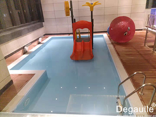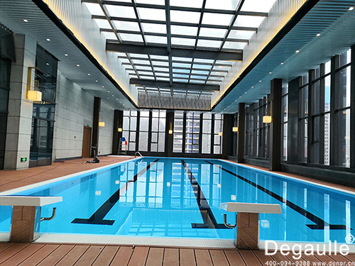 該工程泳池主體采用戴高樂鋼結構拆裝式泳池池體,而鋼結構拆裝式泳池是由鍍鋅鋼板圍板建造而成,建造成本比土建泳池大大的降低,施工周期也大大的縮短,膠膜使用的是戴高樂泳池專用防水膠膜,具有獨特的四層結構,防水效果可達15年。